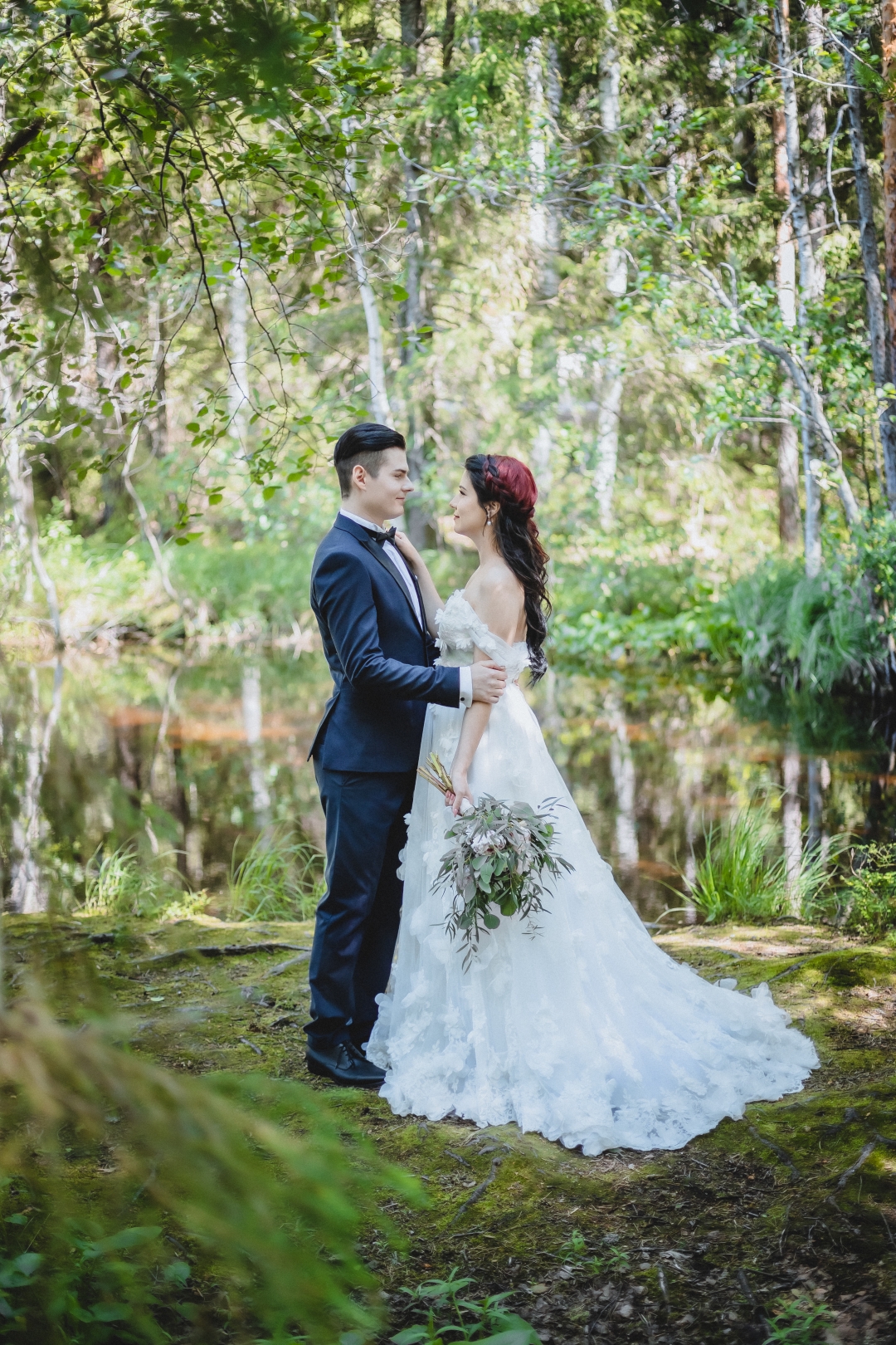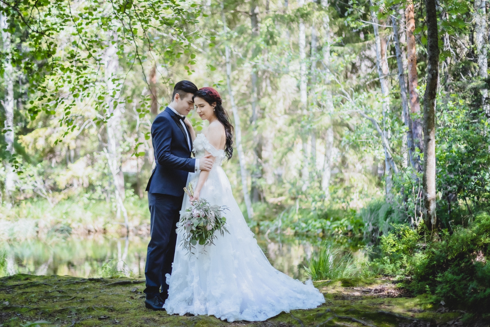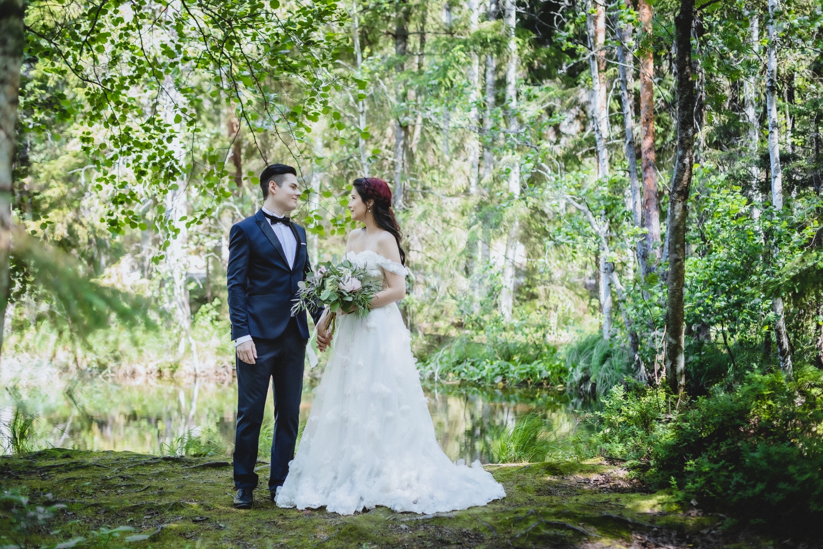 Ihanan Katariinan ja Tuukan hääkuvat loimme kesäkuun lopussa Nuuksion taianomaisessa metsässä. Metsä on tärkeä ja inspiroiva paikka sekä hääparille että minulle, niin Nuuksio oli erinomainen valinta hääpotrettien miljöönä. Kuvaus oli todella innostava ja virkistävä, kun meitä ympäröi kuusien tuoksu ja sen rauhoittava vihreys.